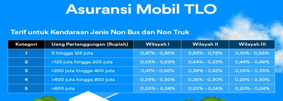 Berikut ini adalah tabel biaya premi asuransi TLO sesuai dengan ketentuan OJK